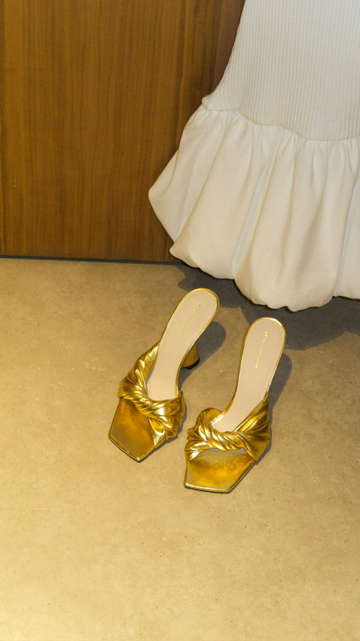 Sandales à talon avec un nœud sur le devant, bout carré. Talon de 9cm