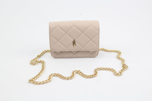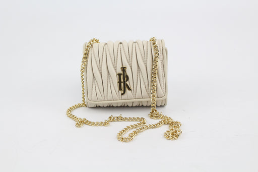 Sac à main en cuir matelassé avec pièce logo et bandoulière dorées. Longueur x Largeur x Hauteur : 26cm x10cm x 14,5cm