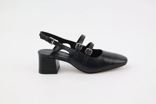 Slingback en cuir lisse. Bout arrondi. Détail de mors doré sur l’avant. Talon bloc. Parfait équilibre entre chic et confort.