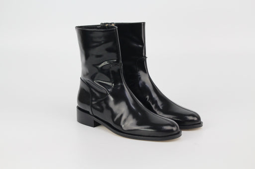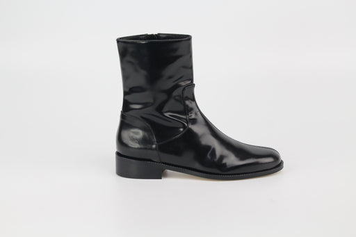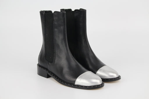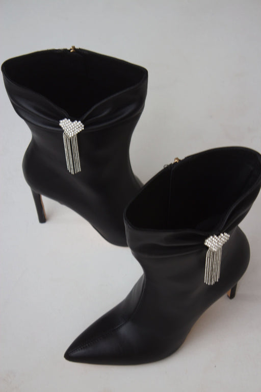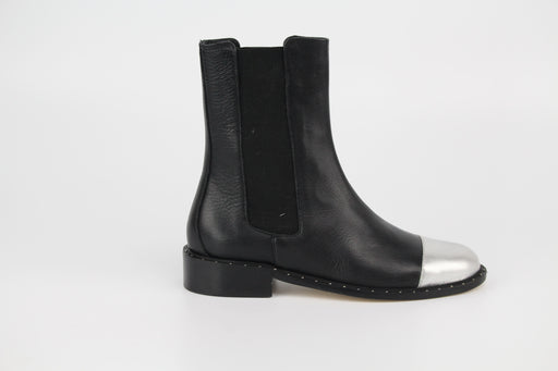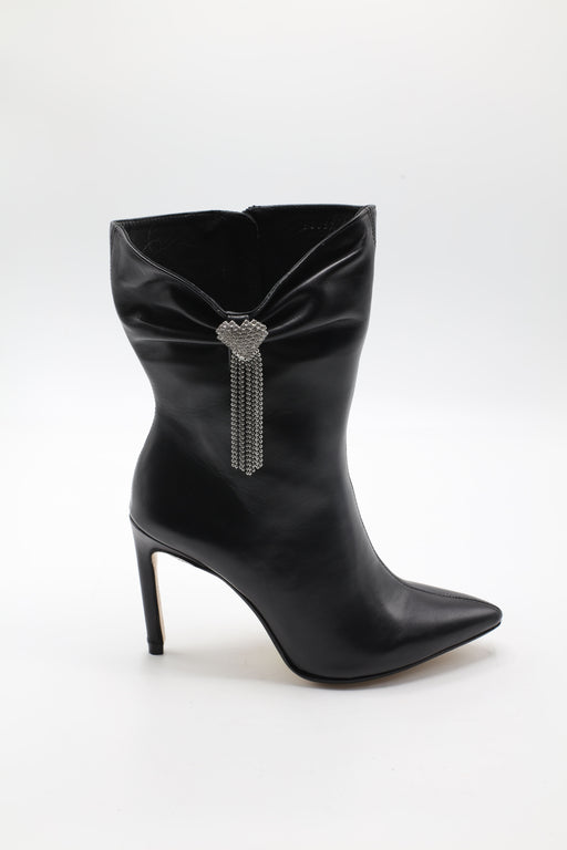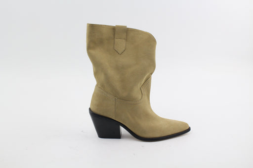 Mule santiag en cuir chèvre velours avec boucle argenté.