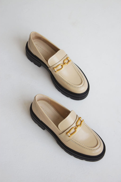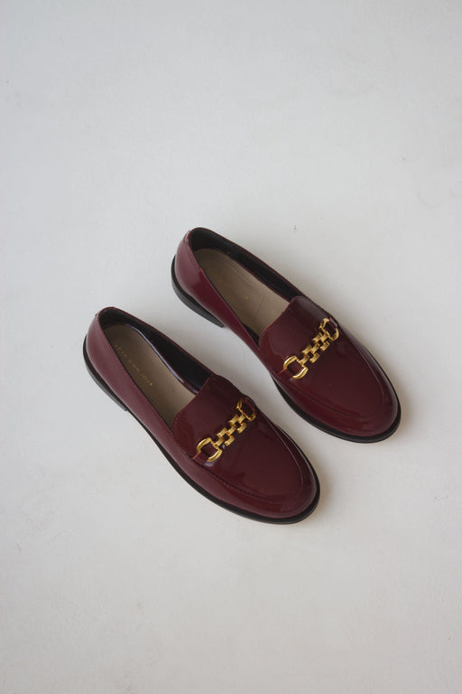 Chaussure en cuir style sandale avec brides symétriques sur le devant. Bout rond. Fermeture avec boucle à la cheville .Talon de 1 cm