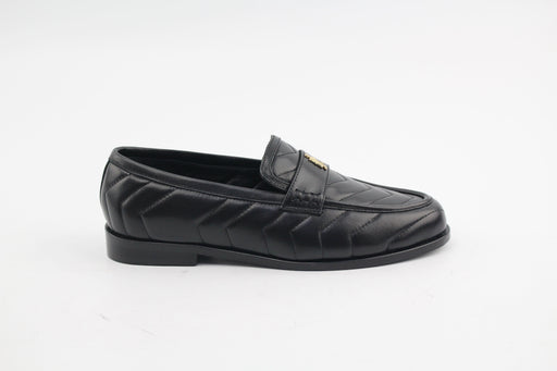 Mocassin matelassé avec mini logo doré et  semelle épaisse.
