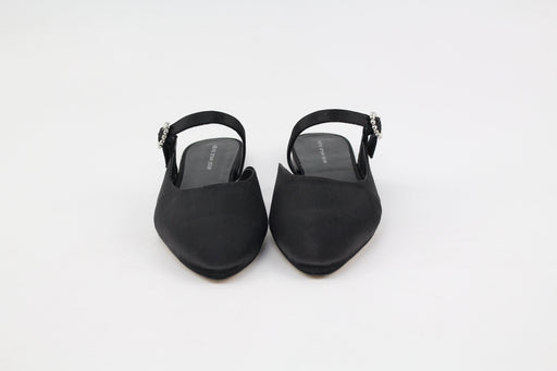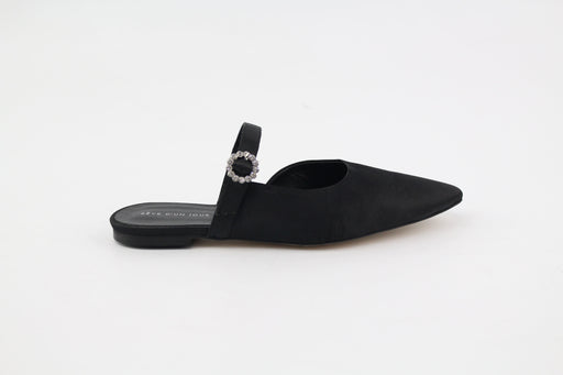 Escarpin mule en satin. Détail bijou en forme de fleur en strass. Talon arrondi. Idéale pour les occasions habillées.