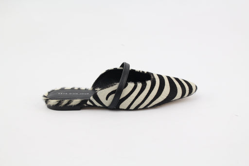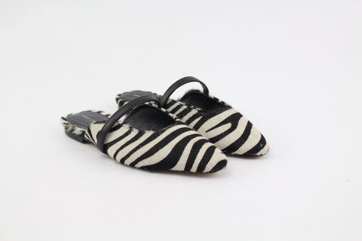 Chaussures plates style mocassins ouverts à l'arrière en cuir accessoire métallique sur le devant. Talon de 1 cm