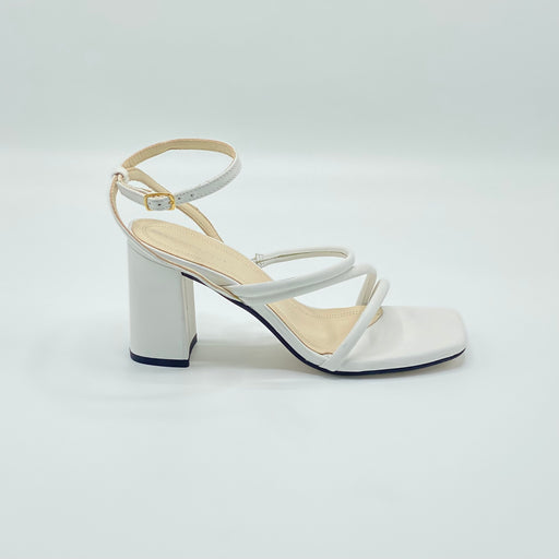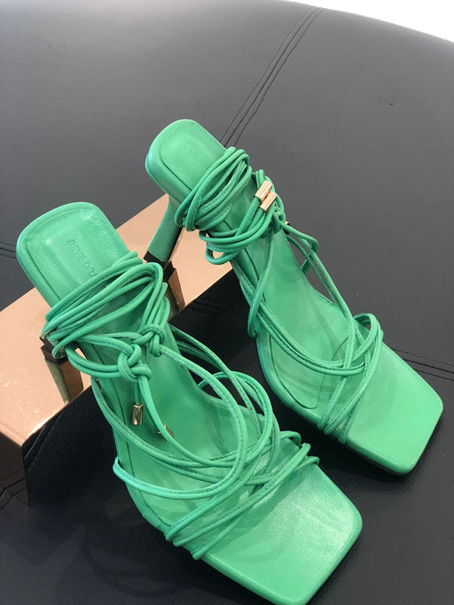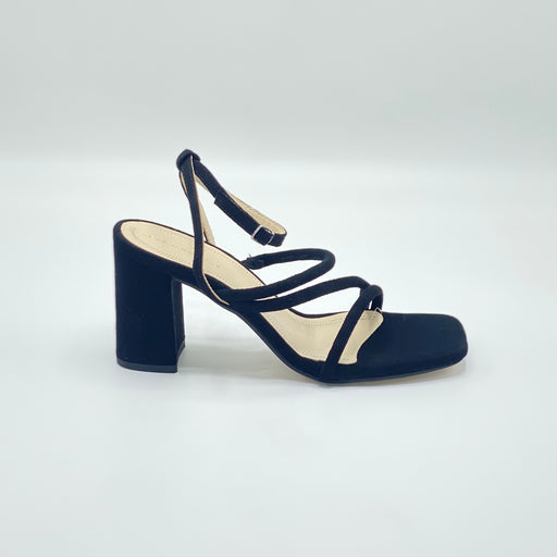 Sandales plates forme, brides fines sur le devant, bout carré. Talon de 10.5cm