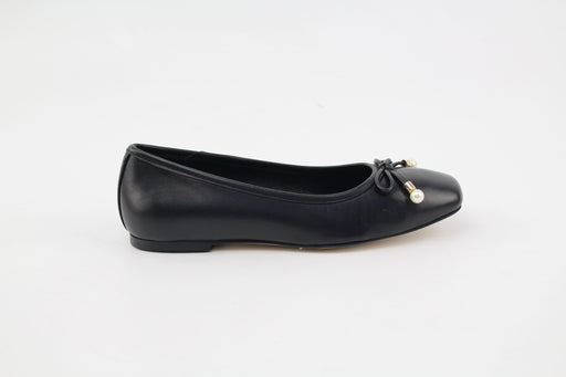 Ballerine en cuir lisse. Bout rond. Nœud orné de perles . Silhouette élégante et féminine. Parfaite pour les journées actives.