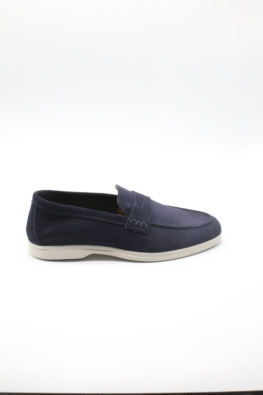 Mocassin en cuir, détail sur le dessus. Semelle gomme.