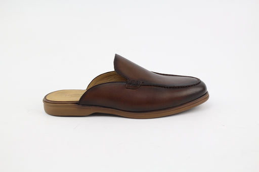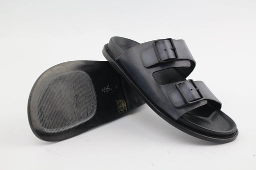 Sandales style claquettes, matière cuir à finition daim, bride sur le devant avec boucle