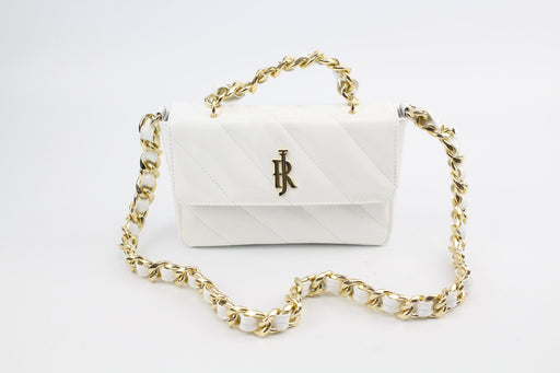 Sac à main en cuir matelassé avec pièce logo dorée et bandoulière chaine et cuir. Longueur x Largeur x Hauteur : 23cm x 7cm x 15cm